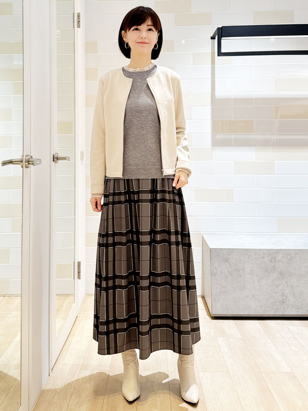細褶設計透膚格紋長裙[成套搭配]