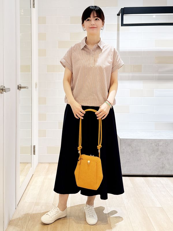 【條紋】捲領抓褶袖襯衫[涼感/可機洗]