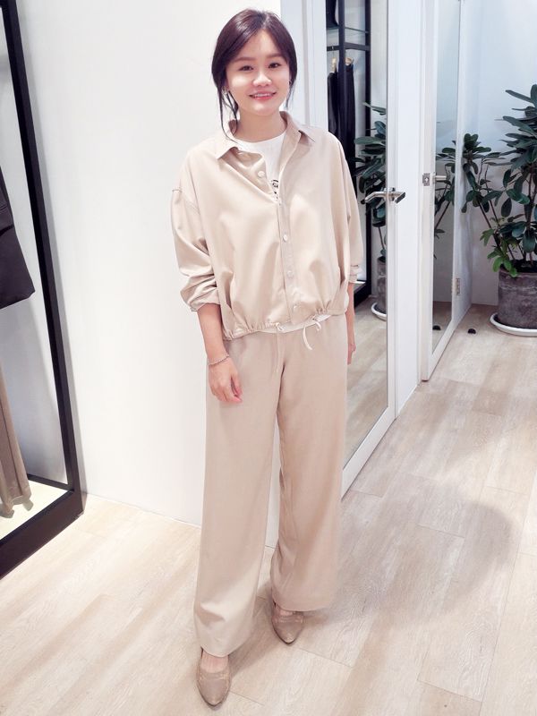 【條紋】捲領抓褶袖襯衫[涼感/可機洗]