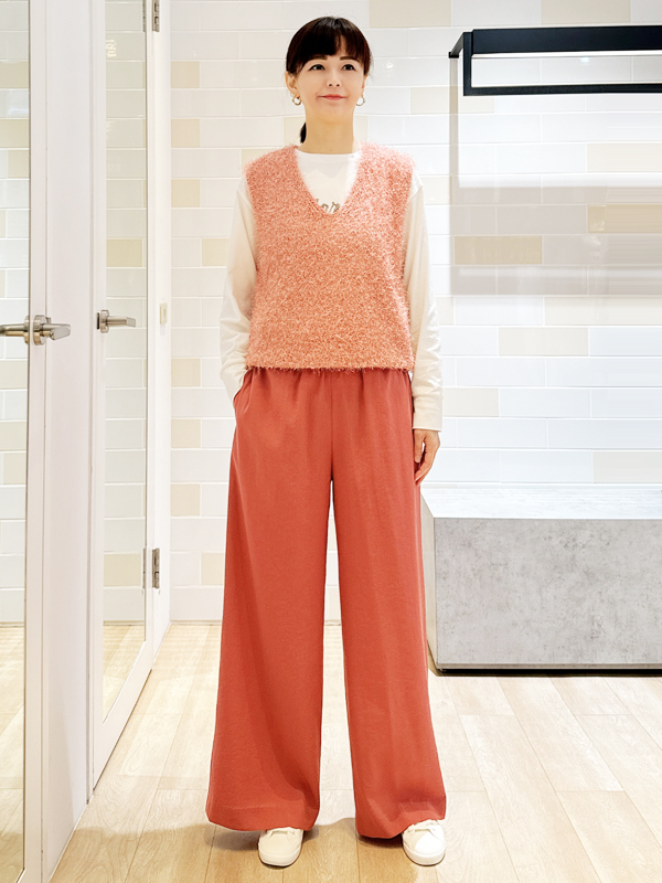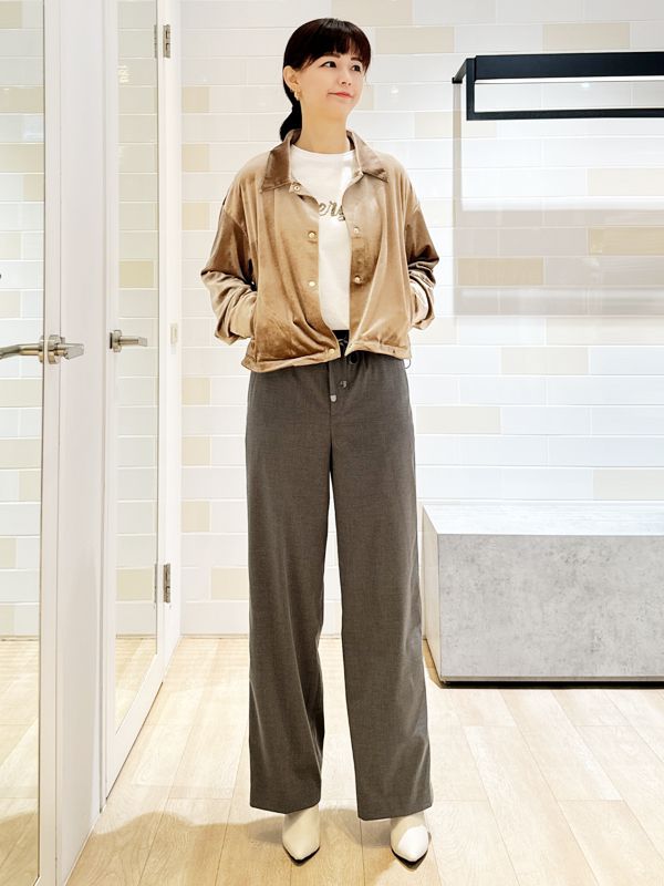 層次感十足的上身搭配,結合流蘇細節與刺繡字樣,展現休閒中帶有巧思的時髦品味,寬褲讓整體更顯自在俐落。