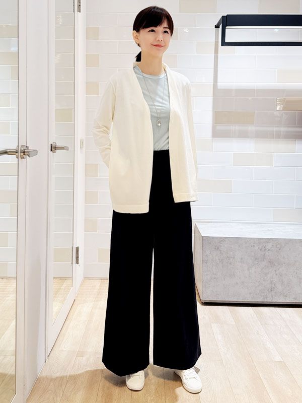 以柔和白色外層襯托淡藍色內搭 營造輕盈且具層次感的配色平衡