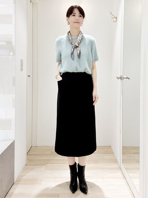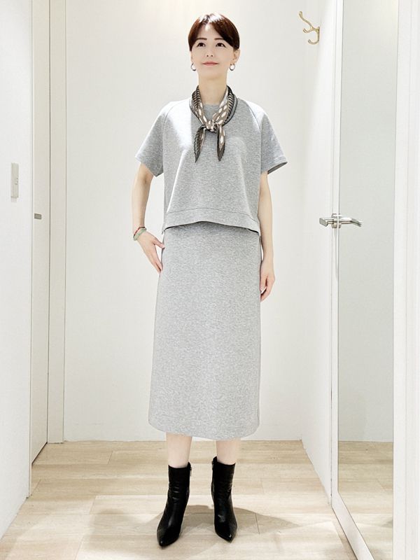 搭配八分長裙延伸柔順線條 再以絲巾與短靴點綴 勾勒出率性中帶有優雅的都會氣息