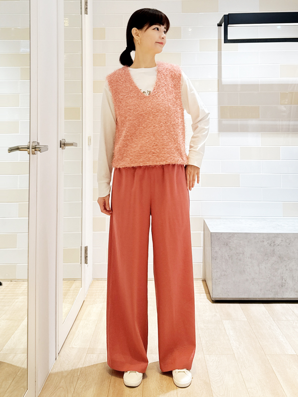 柔軟絨毛質地散發細緻光澤為整體增添溫柔氣息內搭簡約上衣襯托休閒質感下身以同色系寬褲平衡比例營造俐落又不失柔美的印象以粉橘調為主軸展現明亮且具季節感的輕盈造型讓日常穿搭更顯柔和魅力