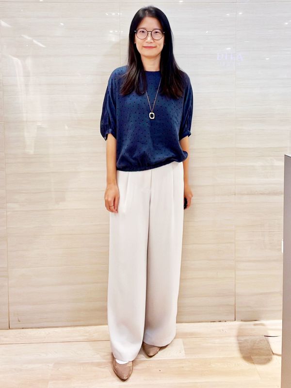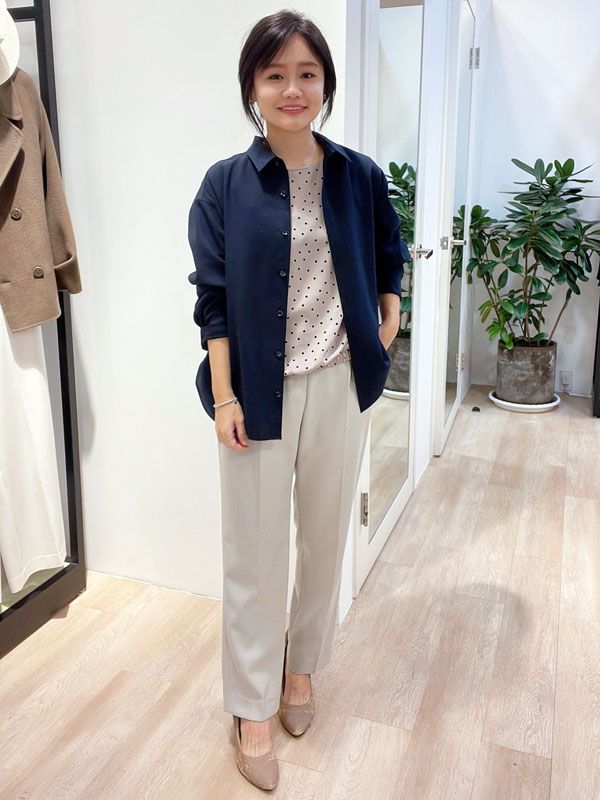 俐落的外套線條搭配高腰寬褲 修飾身形比例,營造從容氣質