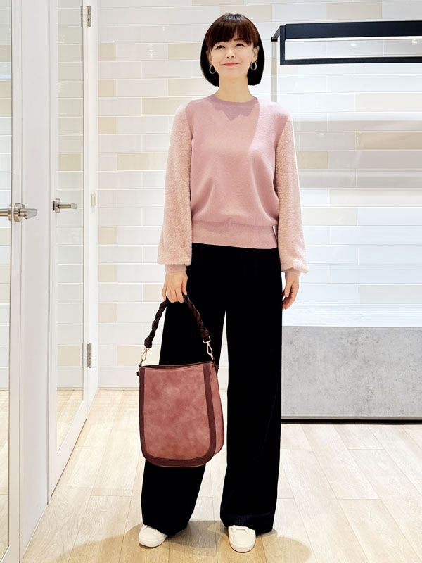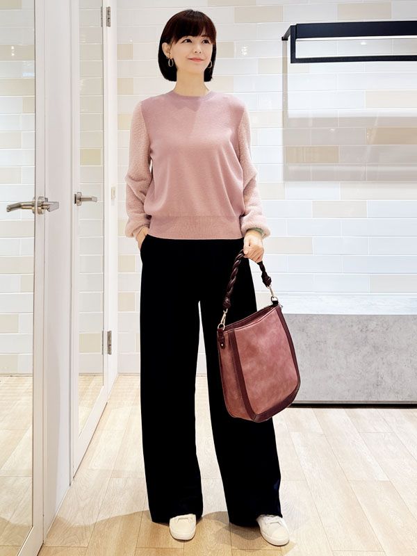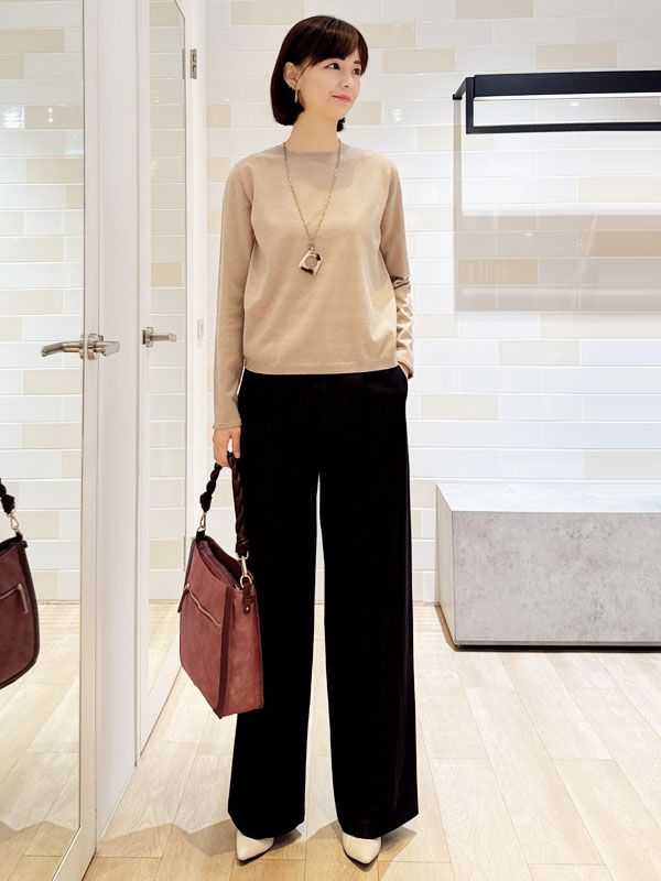 下身選用帶有內磨毛觸感的寬版直筒褲