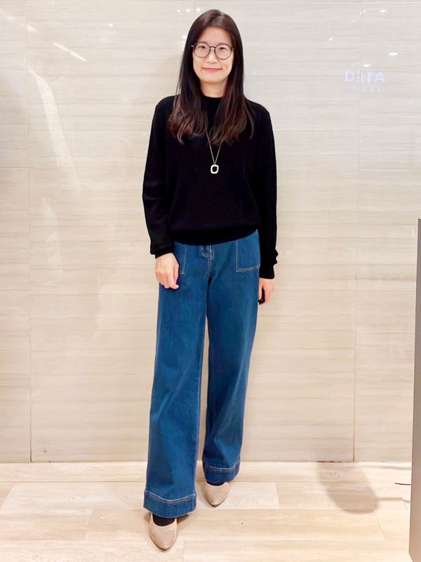 下身以設計感丹寧褲平衡正式與休閒氛圍 搭配簡約鞋款更顯修長比例