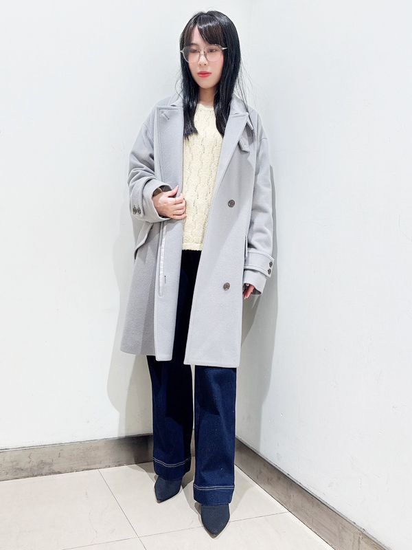 內搭細緻編織的針織上衣 為整體增添溫潤層次感