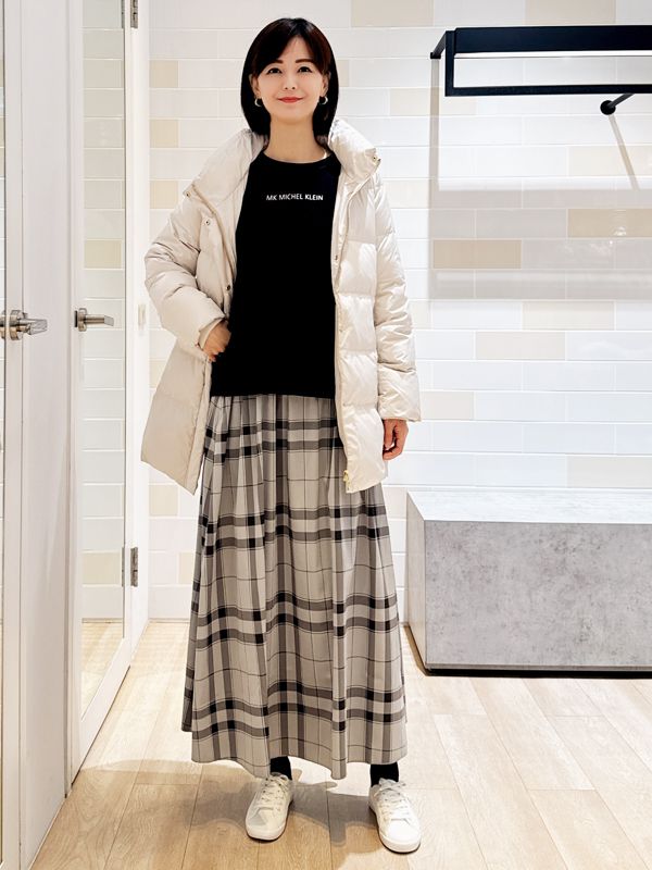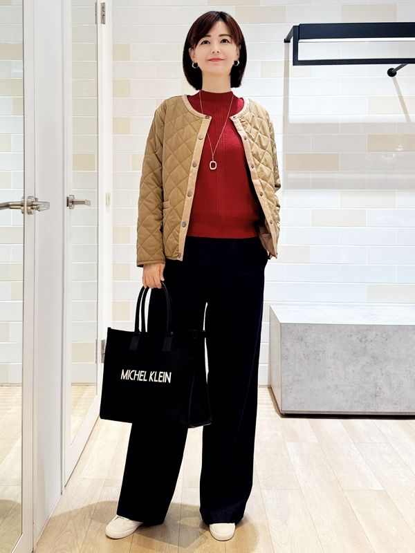 下身選擇寬版直筒剪裁 修飾腿部線條同時保有舒適度