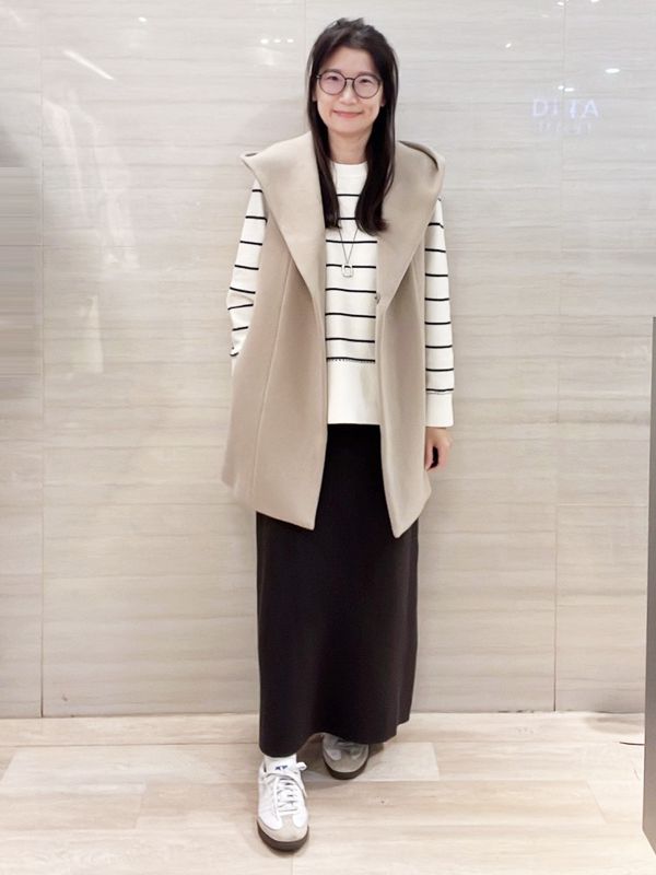 以柔和的大地色外層勾勒沉穩輪廓內搭帶有細節辨識度的針織層次為整體注入低調亮點下身選擇線條俐落的寬版剪裁修飾腿部比例,同時兼顧舒適度呈現介於休閒與都會之間的洗鍊日常風格