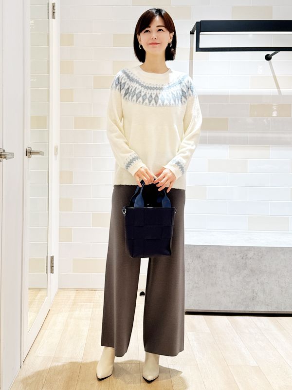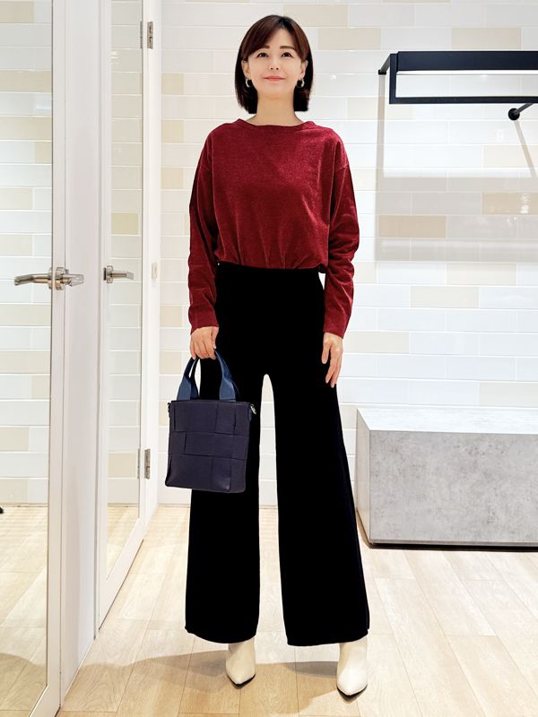 下身以修身直筒線條拉長比例 針織質地帶來貼膚舒適 搭配簡約鞋款,營造恬靜優雅 適合日常與通勤的從容氣息