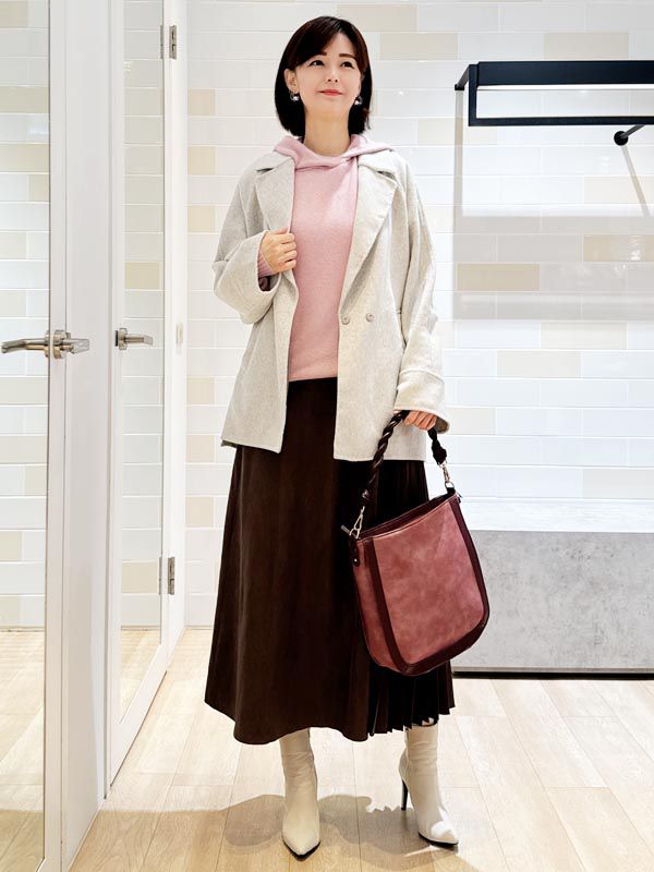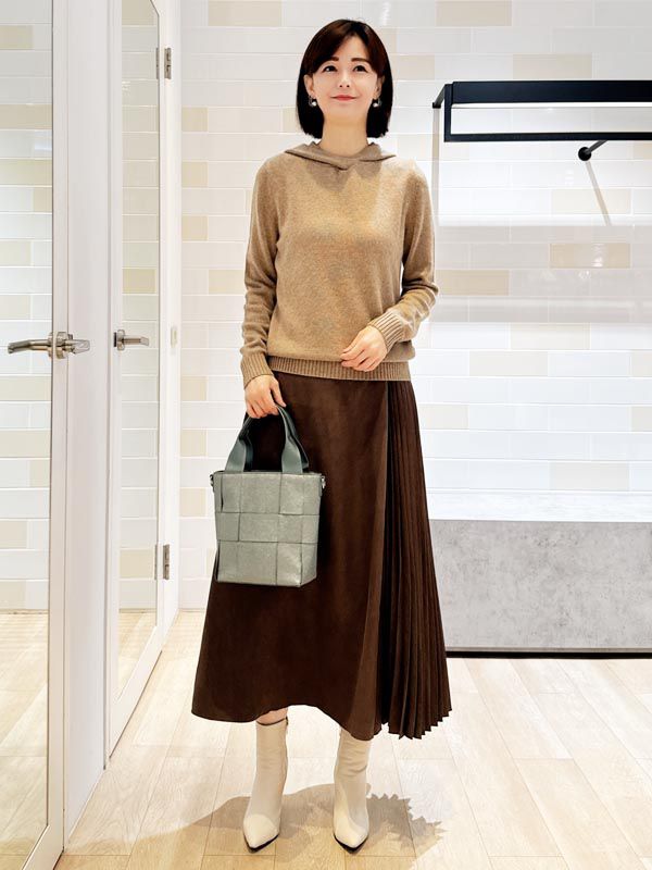 以溫潤的大地色系堆疊層次營造沉穩又不失柔和的冬日氛圍上身以休閒輪廓中和質感材質的成熟感線條俐落卻依然舒適下身選擇帶有垂墜感的裙裝隨步伐展現優雅律動整體散發自然從容的知性魅力