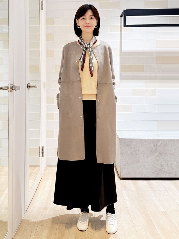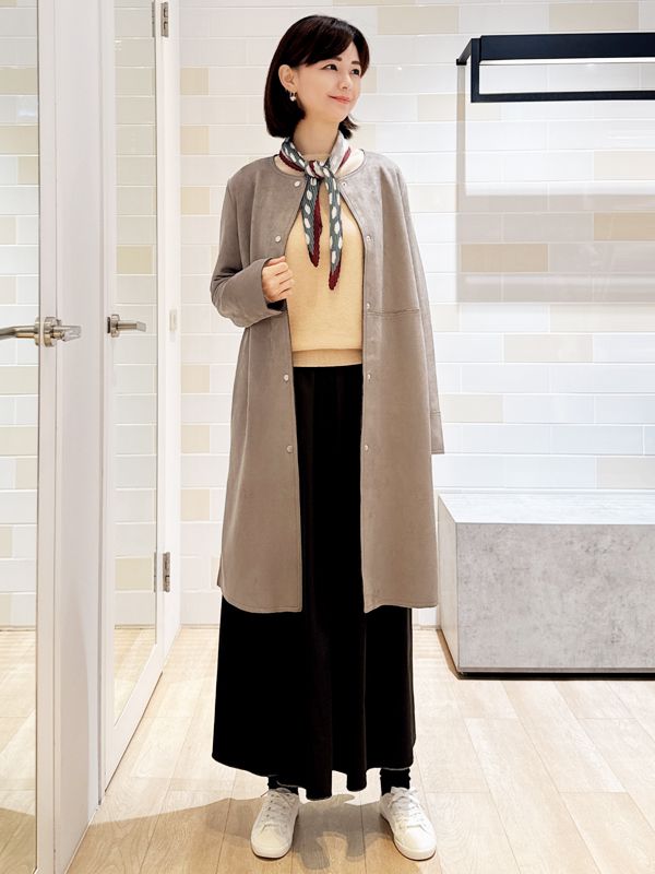 仿麂皮無領長版大衣