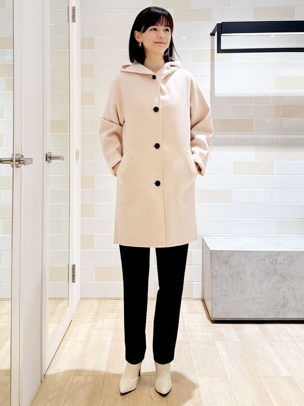 柔和色調的外層營造溫暖包覆感 連帽設計增添隨性氣息 搭配質地細膩的針織內著 在簡約中帶出輕柔層次