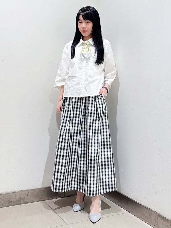 下身搭配經典格紋與打褶設計