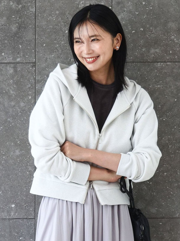 ③ 低調閃耀的細緻光澤,大人休閒的連帽上衣